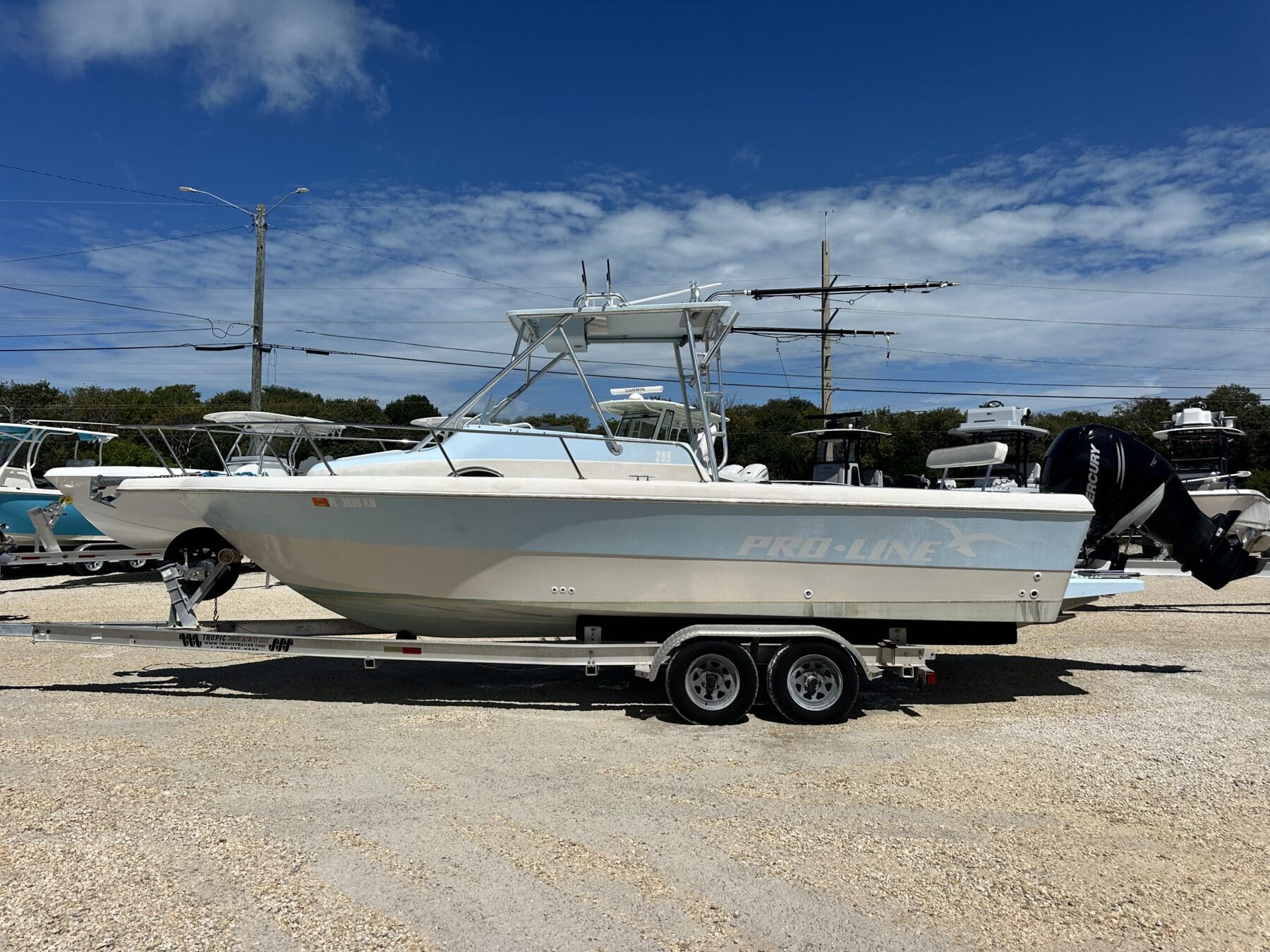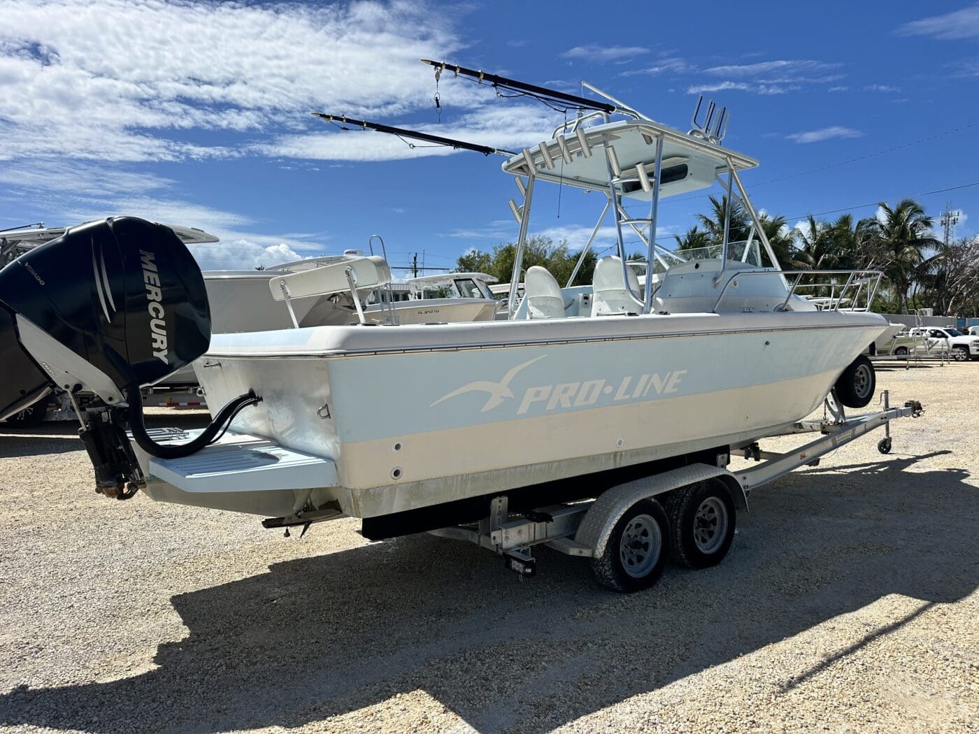 This 1997 Pro-Line 255 is a proven offshore fishing machine that blends durability, performance, and comfort. Repowered with a reliable 300HP Mercury Verado, this boat has the strength and smoothness to get you to your favorite fishing spots quickly and confidently. Trailer inlcuded, boat is sold as is.